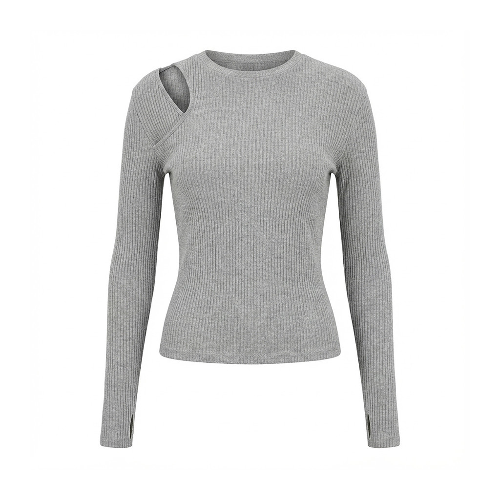 비대칭 레이어링의 쇄골 컷아웃 디자인