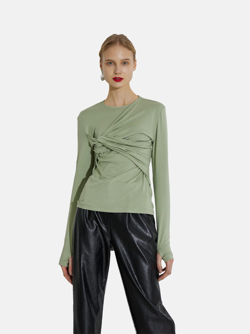 사선 드레이핑으로 바디라인을 아름답게 연출해주는 탑
