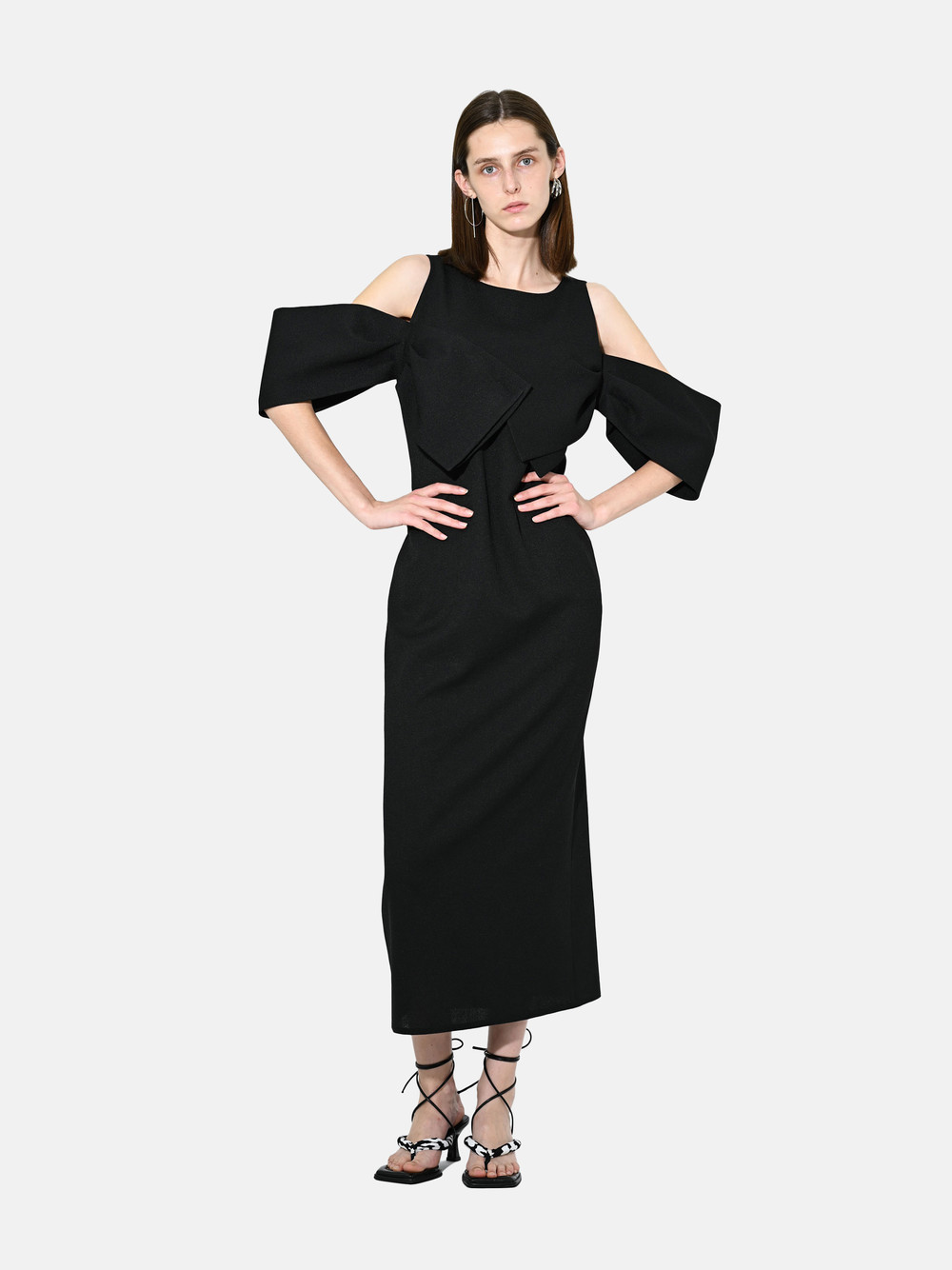모던한 숄더 드레이핑 디테일의 맥시 원피스