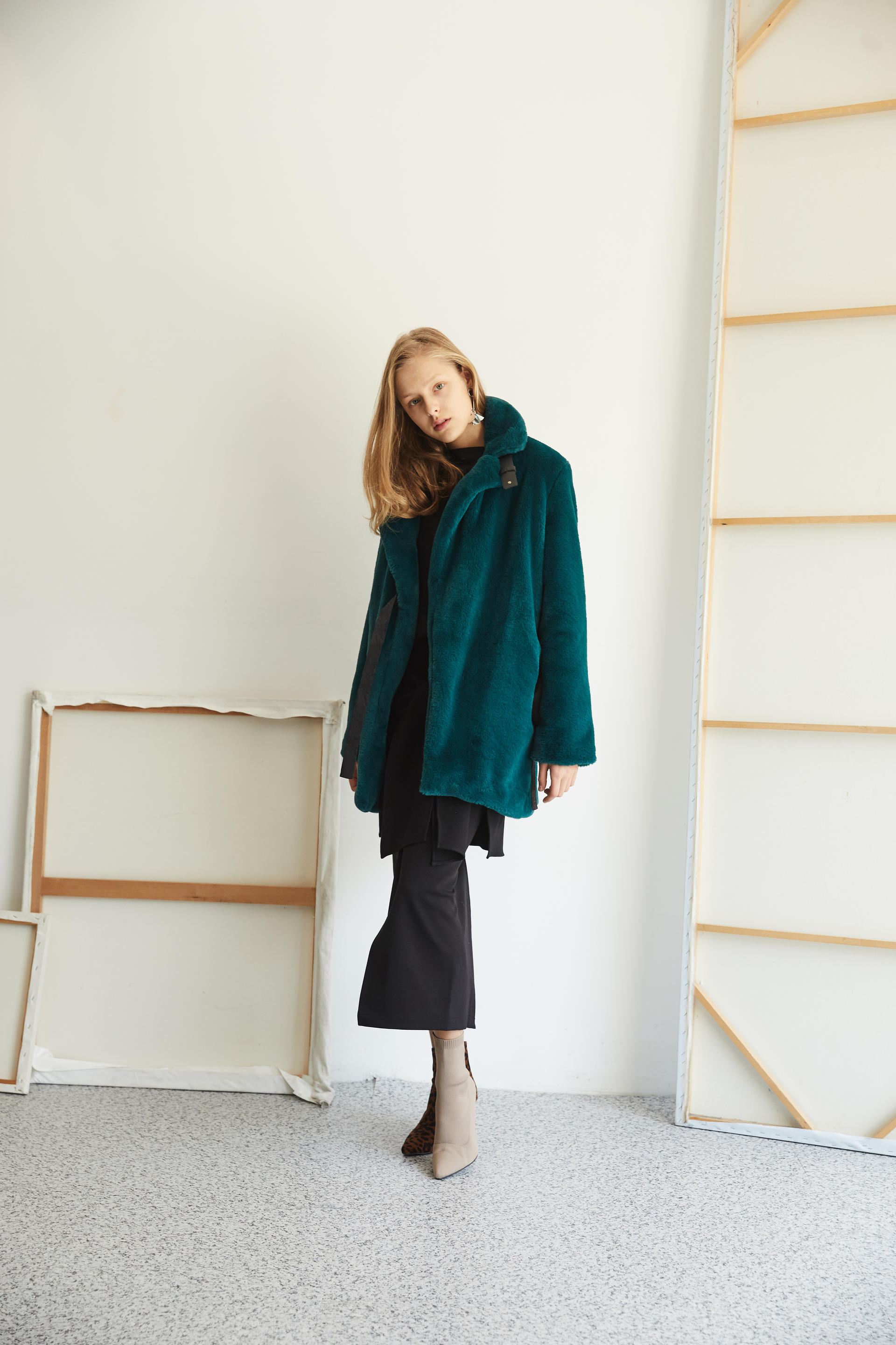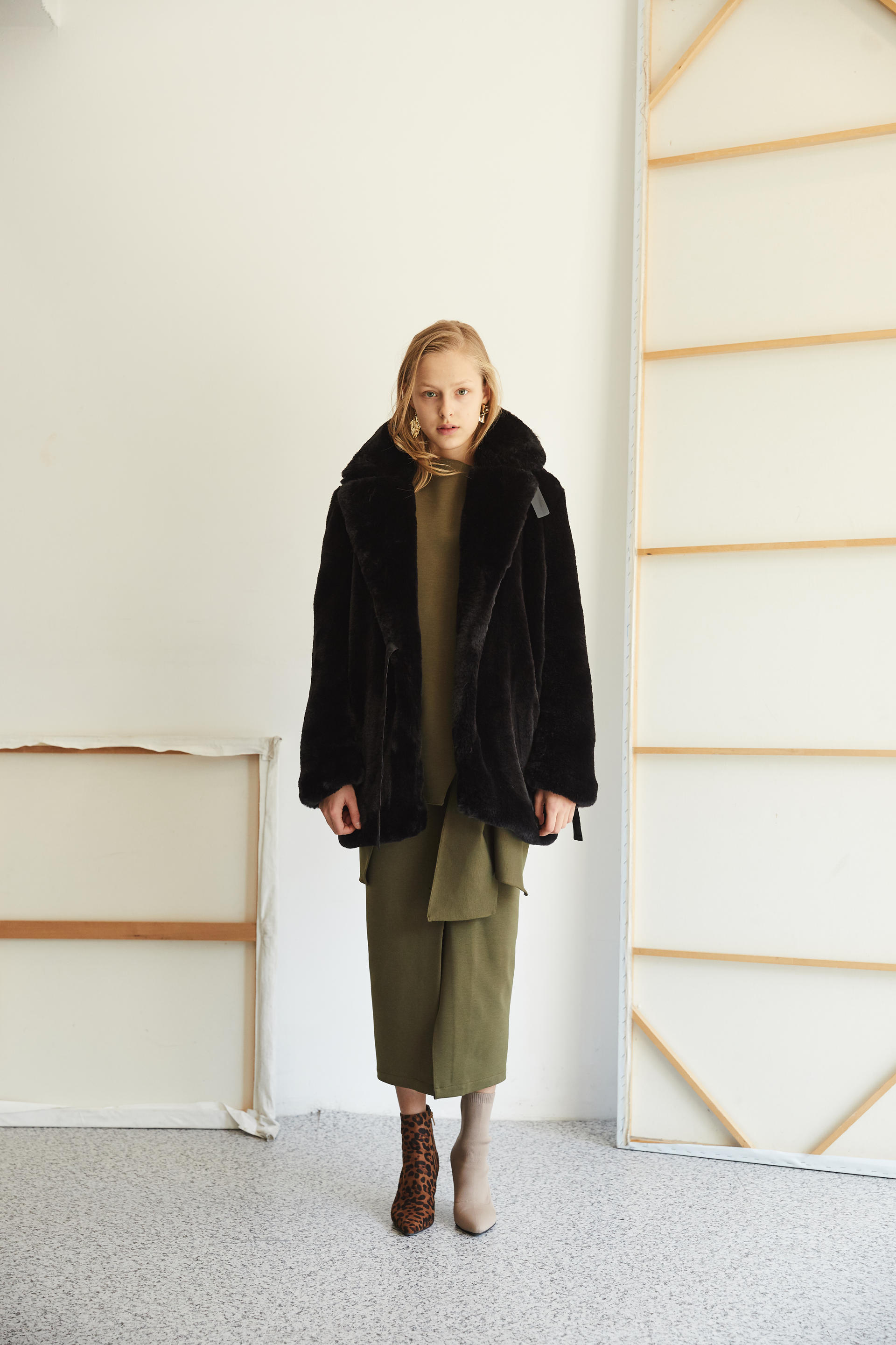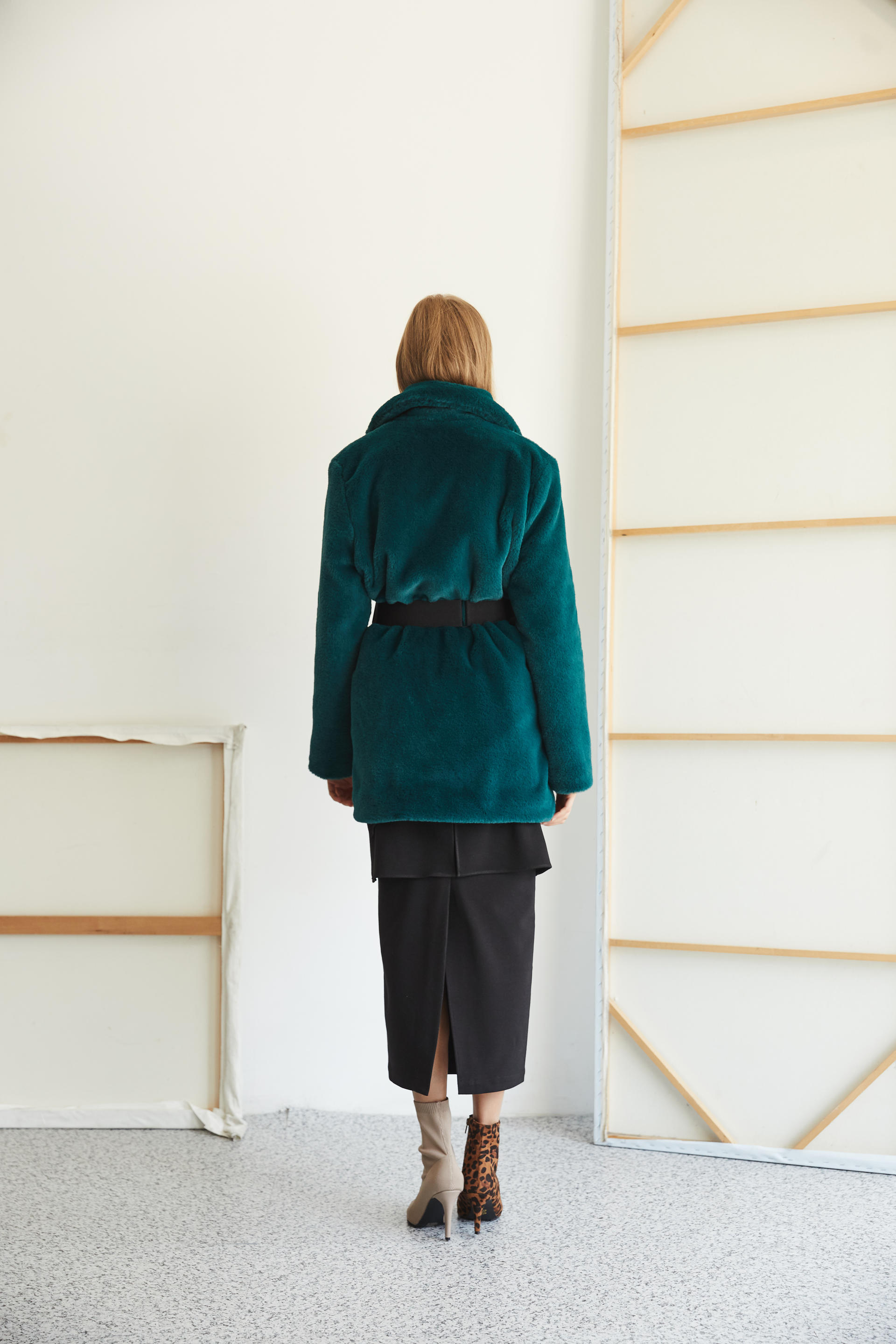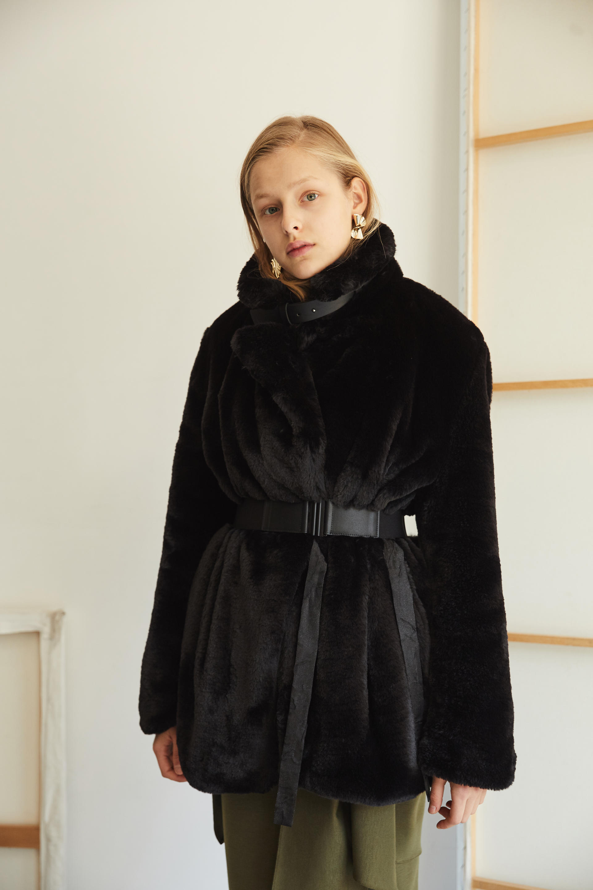 따뜻하게 착용 가능한 하프 기장의 퍼 코트