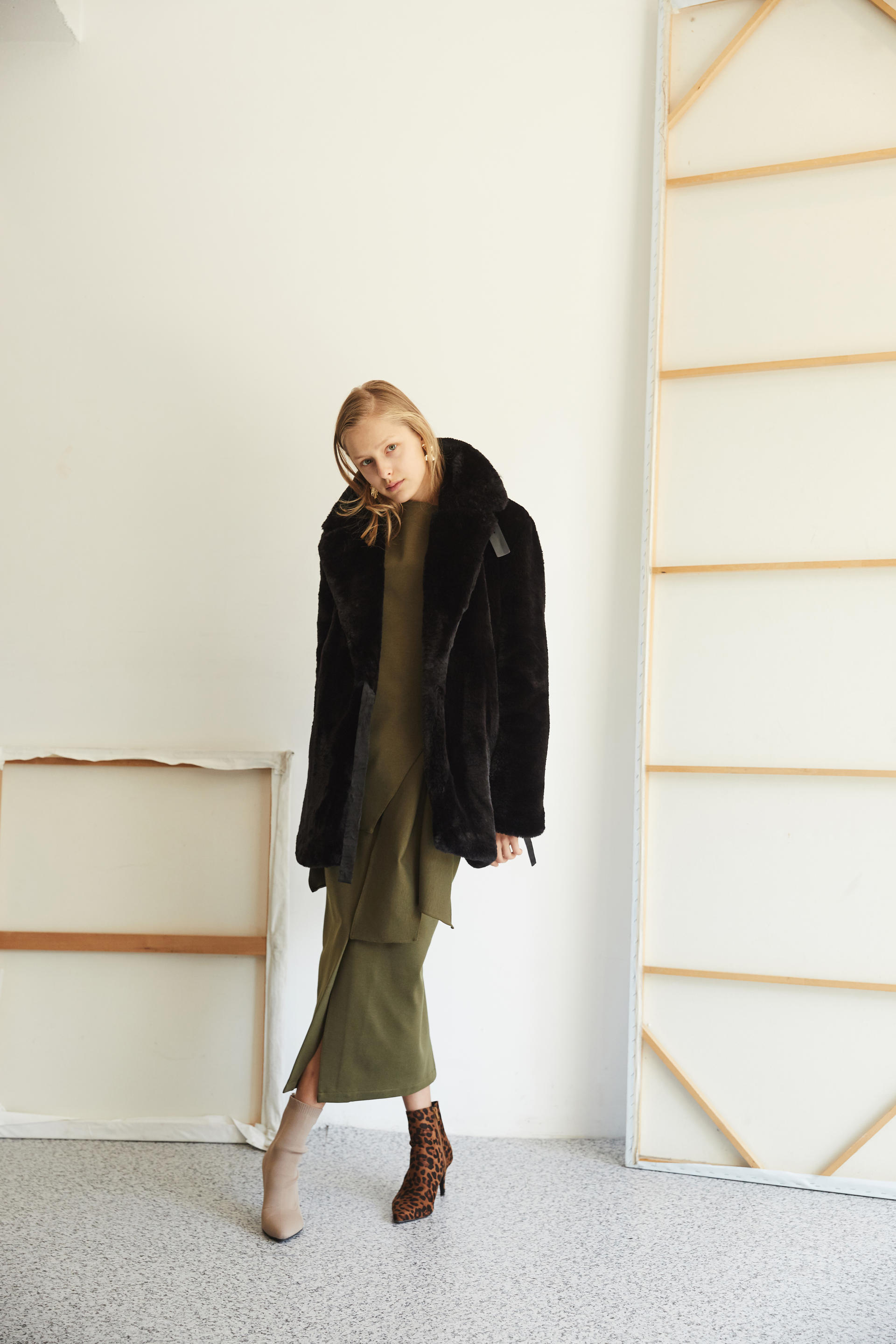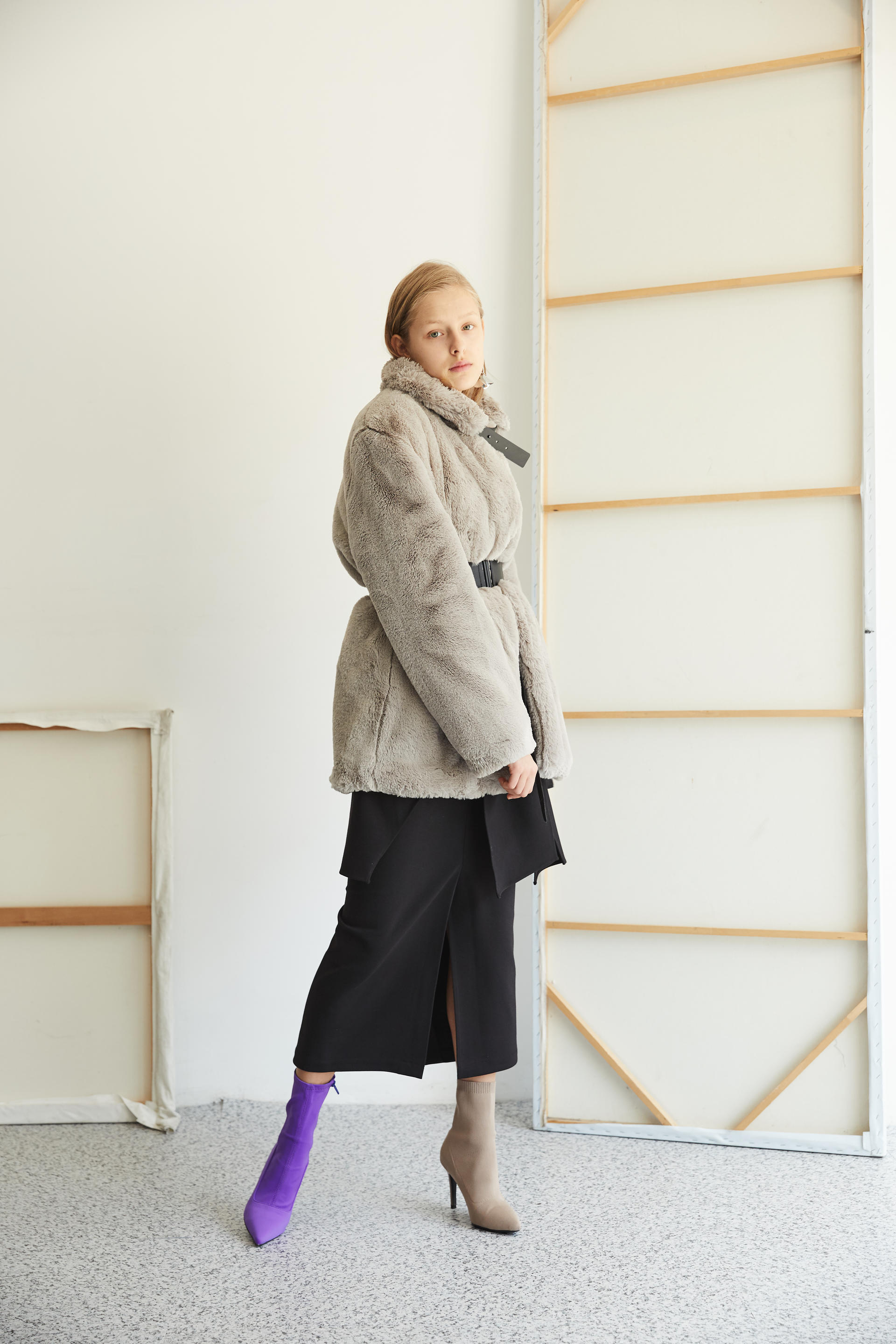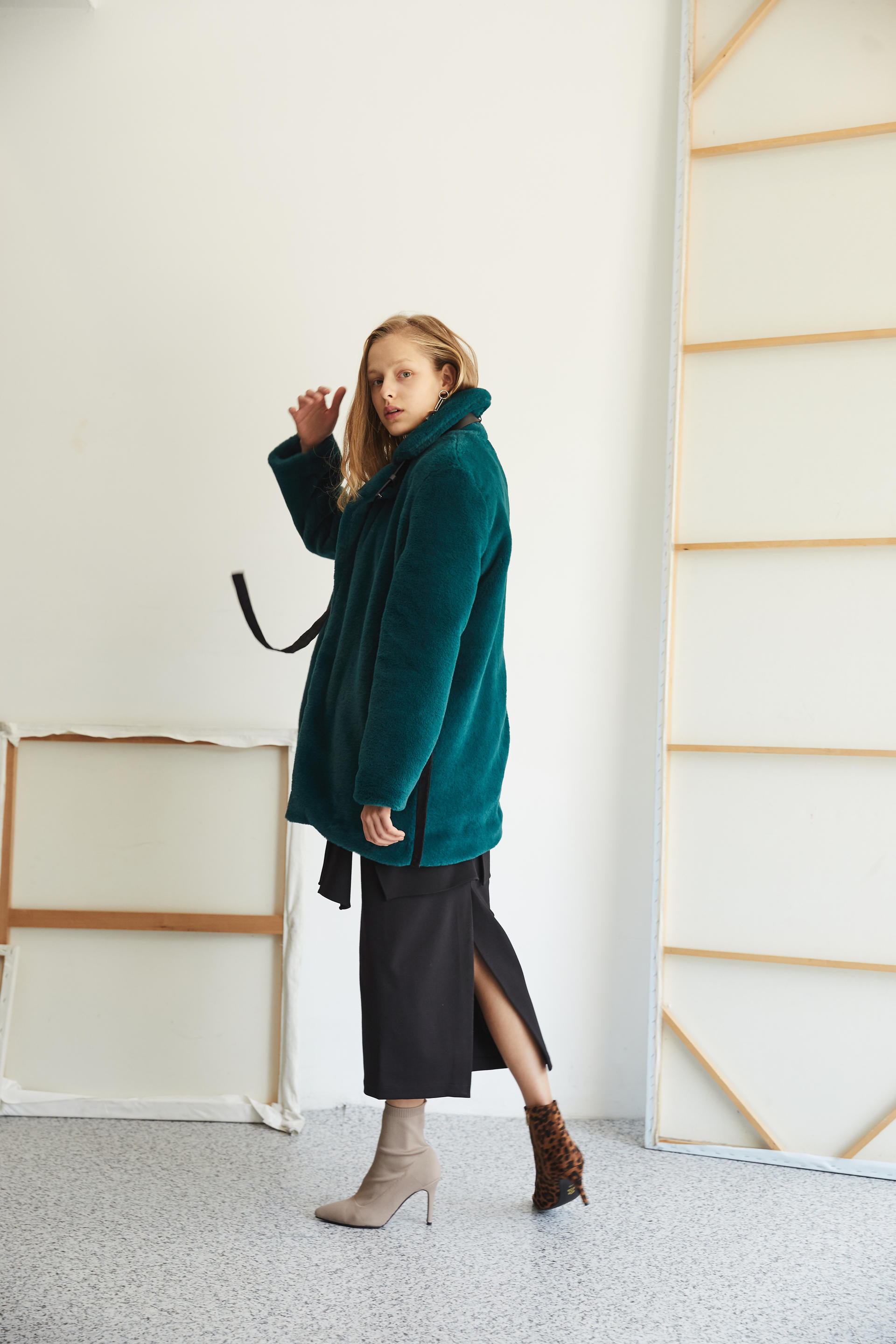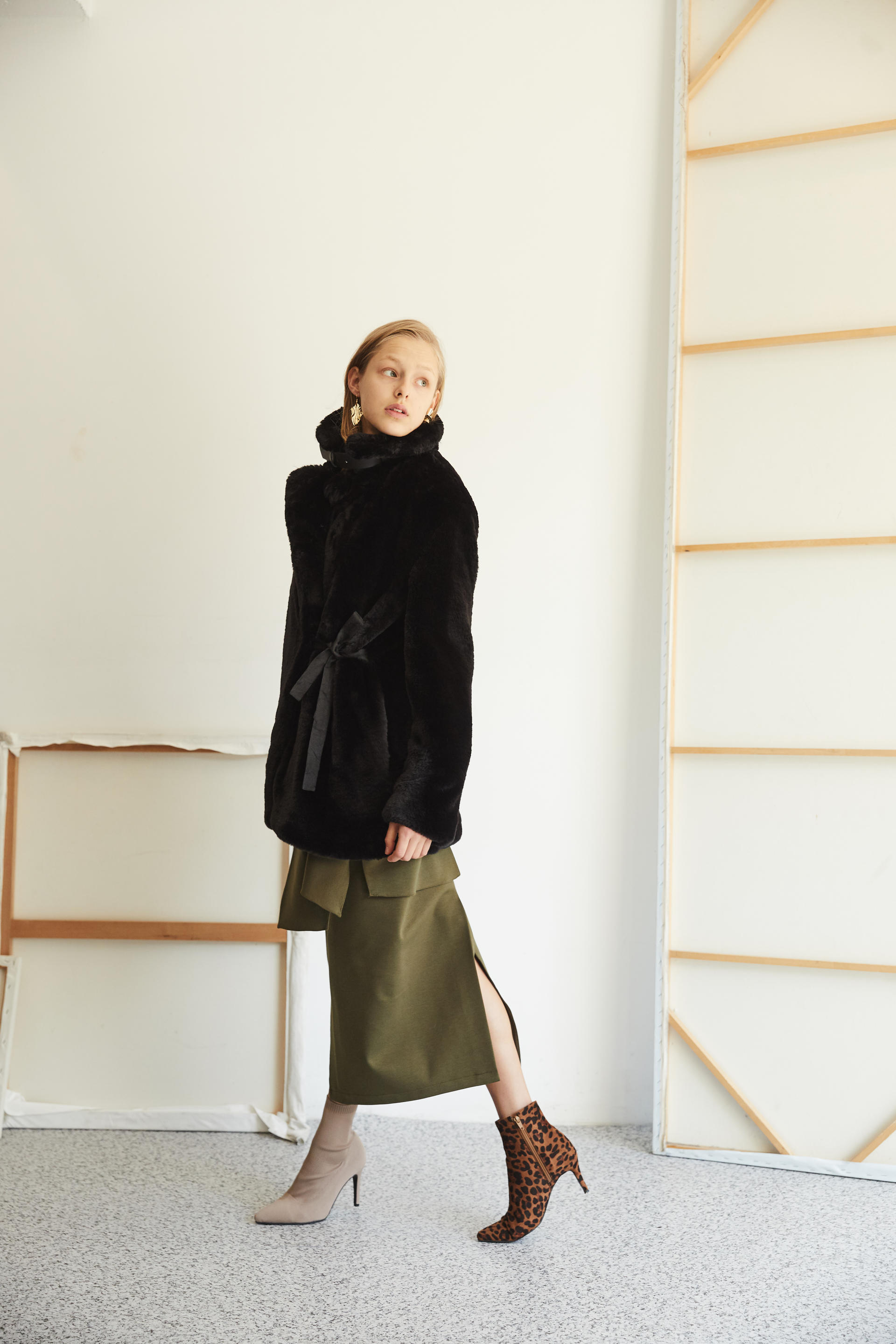 따뜻하게 착용 가능한 하프 기장의 퍼 코트