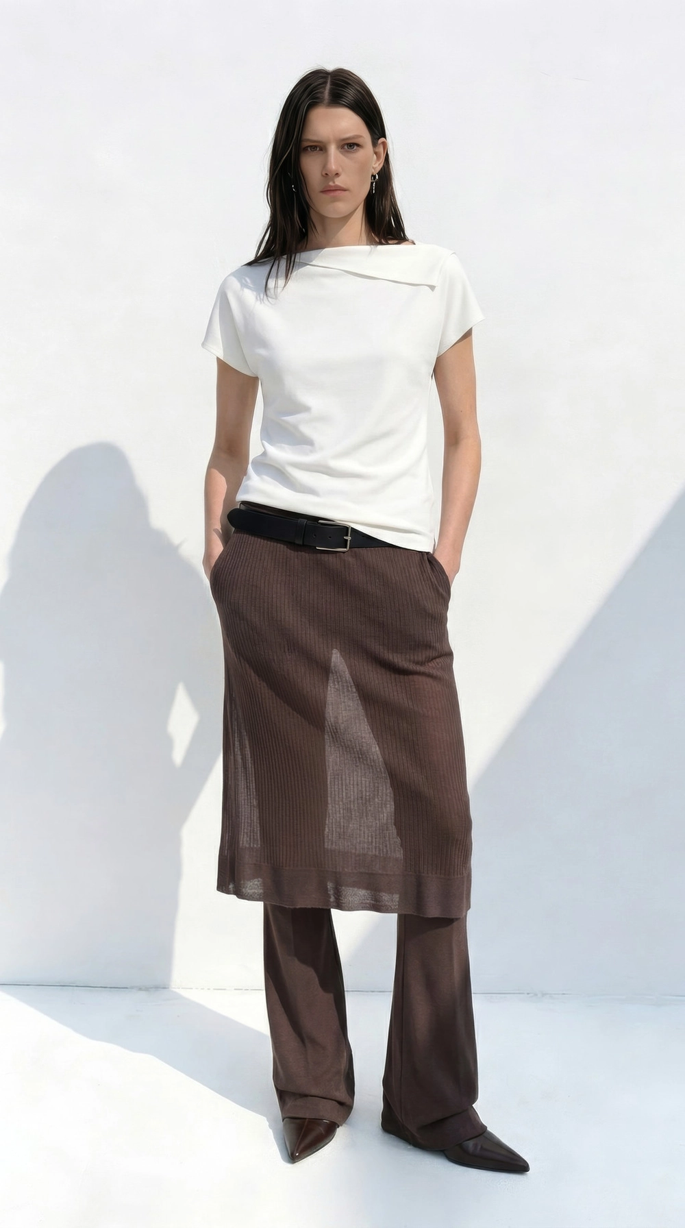네크라인을 돋보이게 하는 입체적인 사선 라인