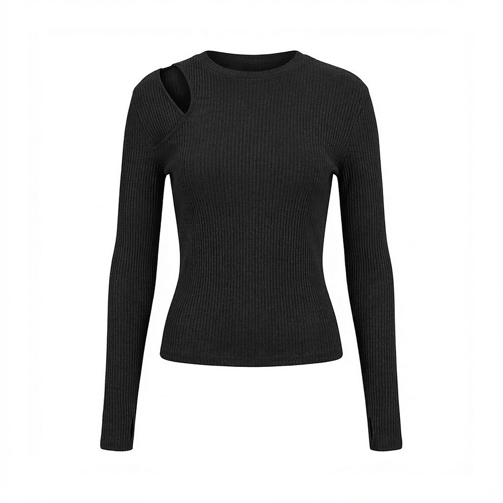 비대칭 레이어링의 쇄골 컷아웃 디자인