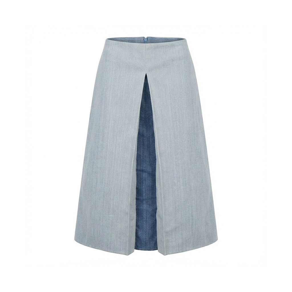 세미 에이라인의 세련된 배색 데님 스커트