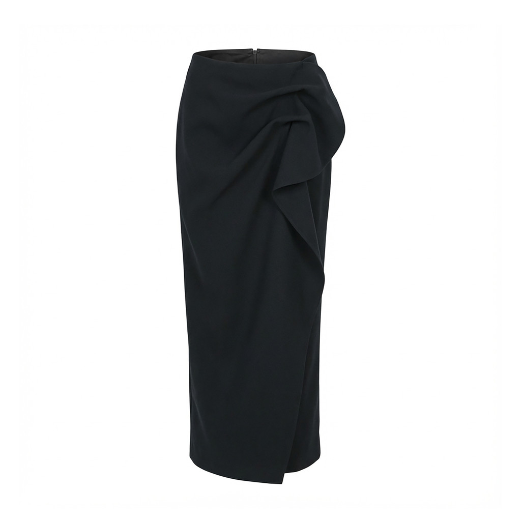 미니멀한 H 실루엣과 레이어링 드레이핑 디테일의 스커트